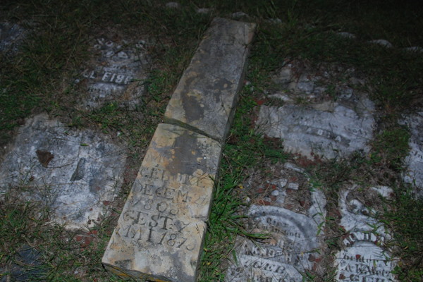 Many monuments, broken or toppled from their bases, have been gathered up by the caretakers and placed together within concrete edging.