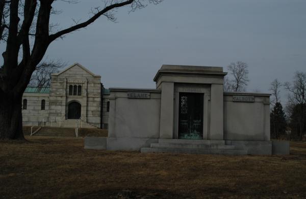 The Community Mausoleum has two very distinct sections: an older, more classical design, and a stark modern addition.