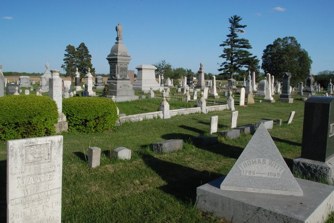 The brick structure behind Congressman Ray's monument is the Wilson crypt.